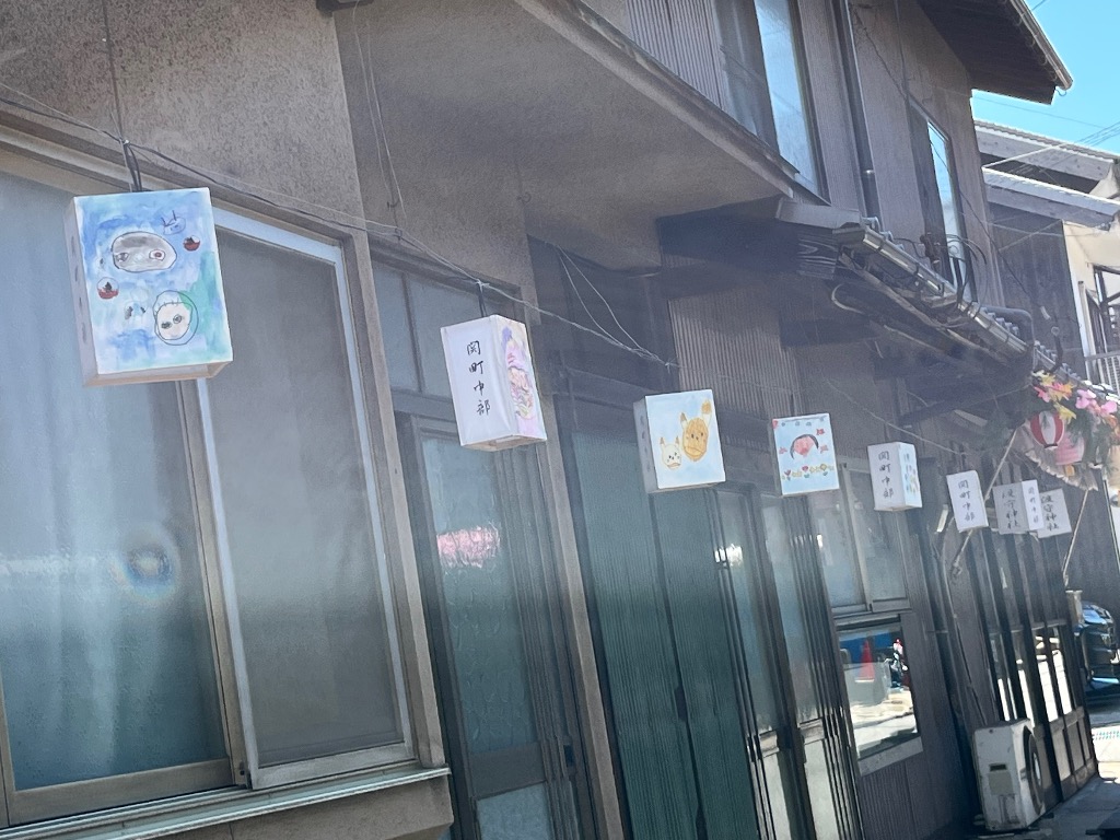 今日は秋祭りの準備。家々の軒下に飾りをつけらられていました。7年に一度の当番の年だとか。幼児が描いた絵の灯篭があちこちに飾られていたのが可愛かったです。