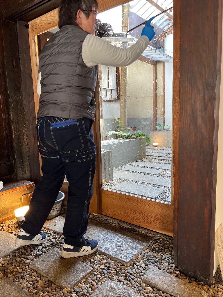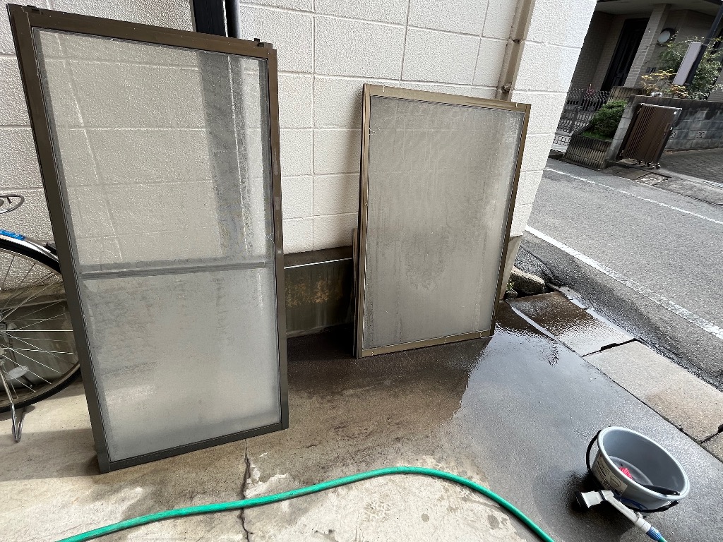 福山市川口町で週2回お掃除に伺って今日は2時間コースの浴室・トイレ・洗面台・床拭き掃除からのリビングの掃き出し戸ガラスサッシ4枚をキレイにしました。